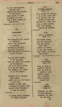 522. Hrdá. (Nápěv 10.) Přeškoda, má milá, že nejsi upřímná; přeškoda, má milá, že’s tak hrdá: myslíš si o sobě, že není přes tebe: však ona tě zmejlí tvá naděje! Z Hradecka. |