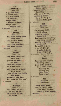 719. Vrták. (Nápěv 126.) Hop, holka, svlíkej kabát, svlíkej kabát, dáme si vrták zahrát, vrták zahrat: holka kabát nesvlíkala, přeci vrták tancovala. Z Hradecka. |