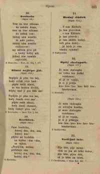 28. Svoboda. (Nápěv 10.) Truc na truc někomu do našeho domu, truc na truc někomu do našich vrat: žádnej nám nemůže za naše peníze, žádnej nám nemůže rozkazovat: my můžem pivo pít a hezky holky mít, žádnej nám nemůže zapovědít. Z Klatovska. – Srov. str. 234, č. 527. |