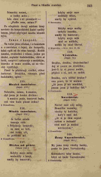156. Mladá tanečnice. (Nápěv 336.) Já holka mladá tancuju ráda v Štěpánojc hospodě; za mnu se točí, má černý oči, to potěšení mé. Z Domažlicka. |
