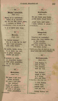 26. Hokynář. (Nápěv 701.) Šel jsem a měl jsem mošnu novičkou, šel jsem a měl jsem vajec plničkou: husaři mě potkali, vajíčka mi vybrali; šel jsem a měl jsem mošnu prázdničkou. Z Prachenska. |