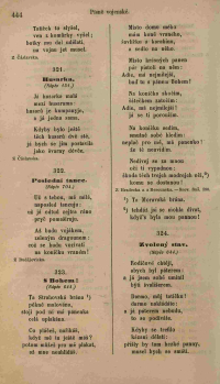 321. Husarka. (Nápěv 151.) Já husarka malá mezi husarama: husarů je kumpanyje, a já jedna sama. Kdyby bylo ještě těch husarů dvě stě, já bych se jim postavila jako švarny děvče. Z Čáslavska. |