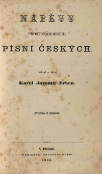 Nápěvy prostonárodních písní českých. Sebral a vydal K. J. Erben. Praha 1862 |